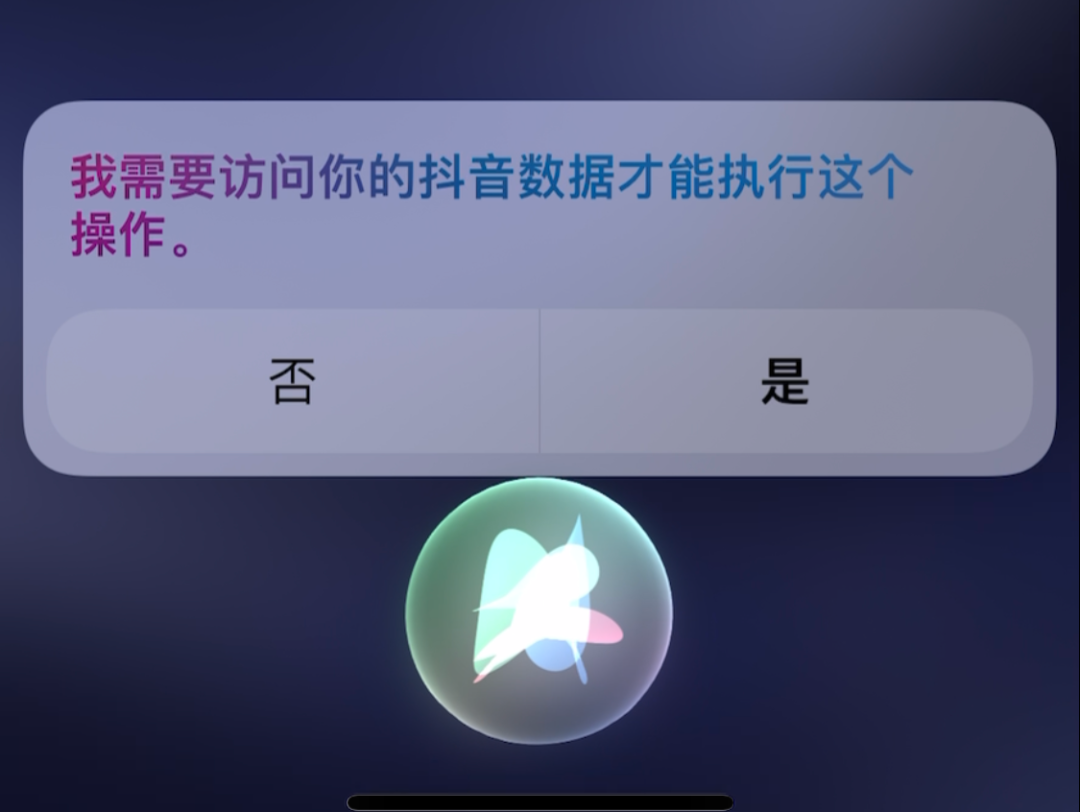 不过首次使用时,Siri会提示需要访问抖音数据才能执行。