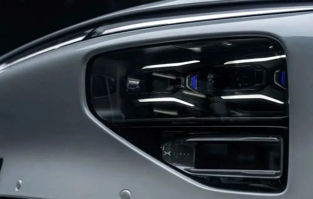 小鹏G9上的两颗激光雷达分别置于两个大灯的下方,从外观上来看为黑灰色。