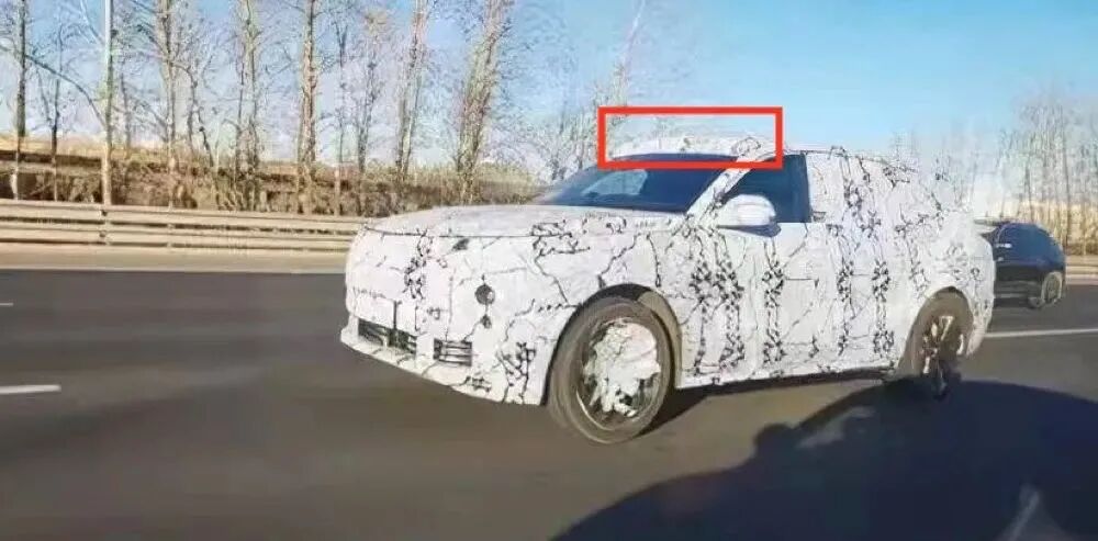 根据网络上流传的理想X01的伪装测试图来看,车辆挡风玻璃的上方有一个长条形的凸起,贯穿整个车顶。
