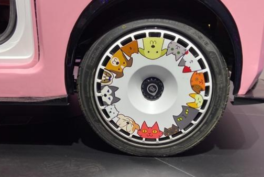 这款车作为特别版车型,新车内外均采用全新粉和白色涂装,并换装了非常个性的轮圈。