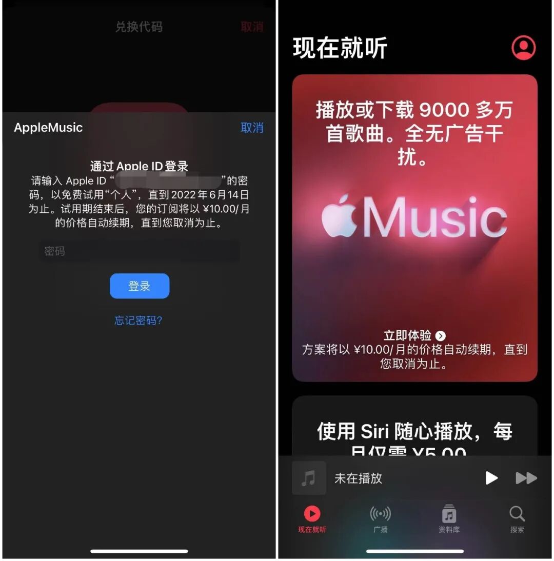 随后通过自己的Apple ID登录到Apple Music,就能享受会员权益了。