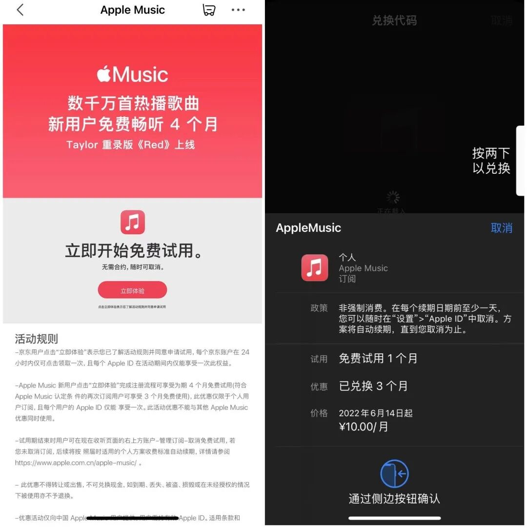 新用户可以领取4个月的Apple Music会员,老用户则可领3个月。