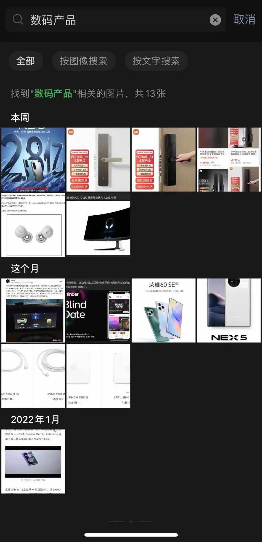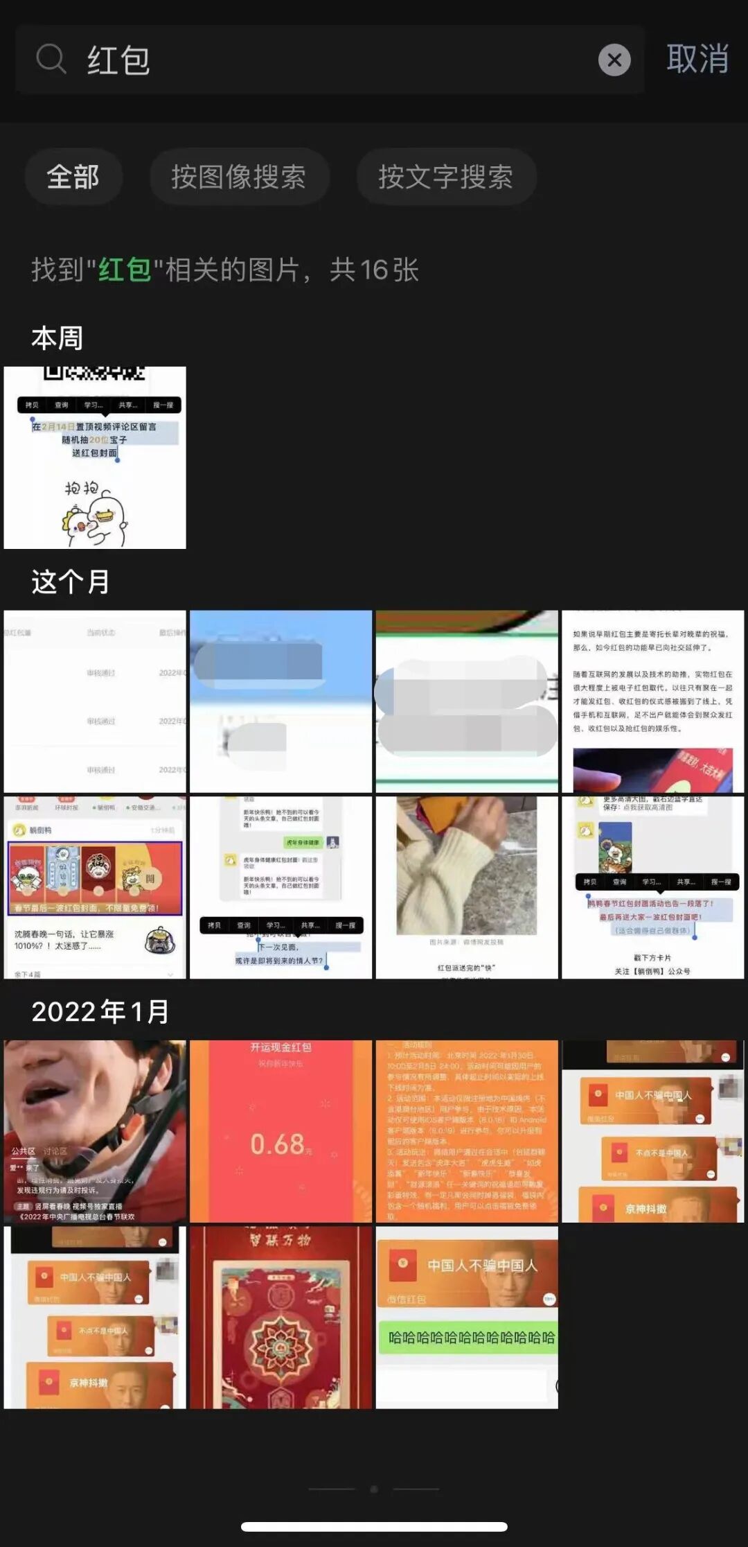 不过该功能目前似乎只能搜索到2022年1月之后的图片,我的聊天记录里明明有很多之前的图片,但并不能搜索出来。