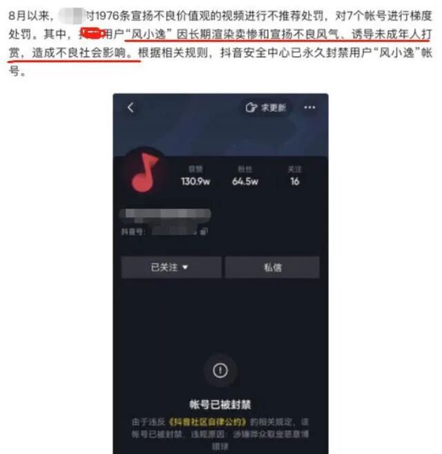 当然了,这种刻意为博眼球的视频,官方也不会轻饶。在上个月末,他直接被抖音封号了。