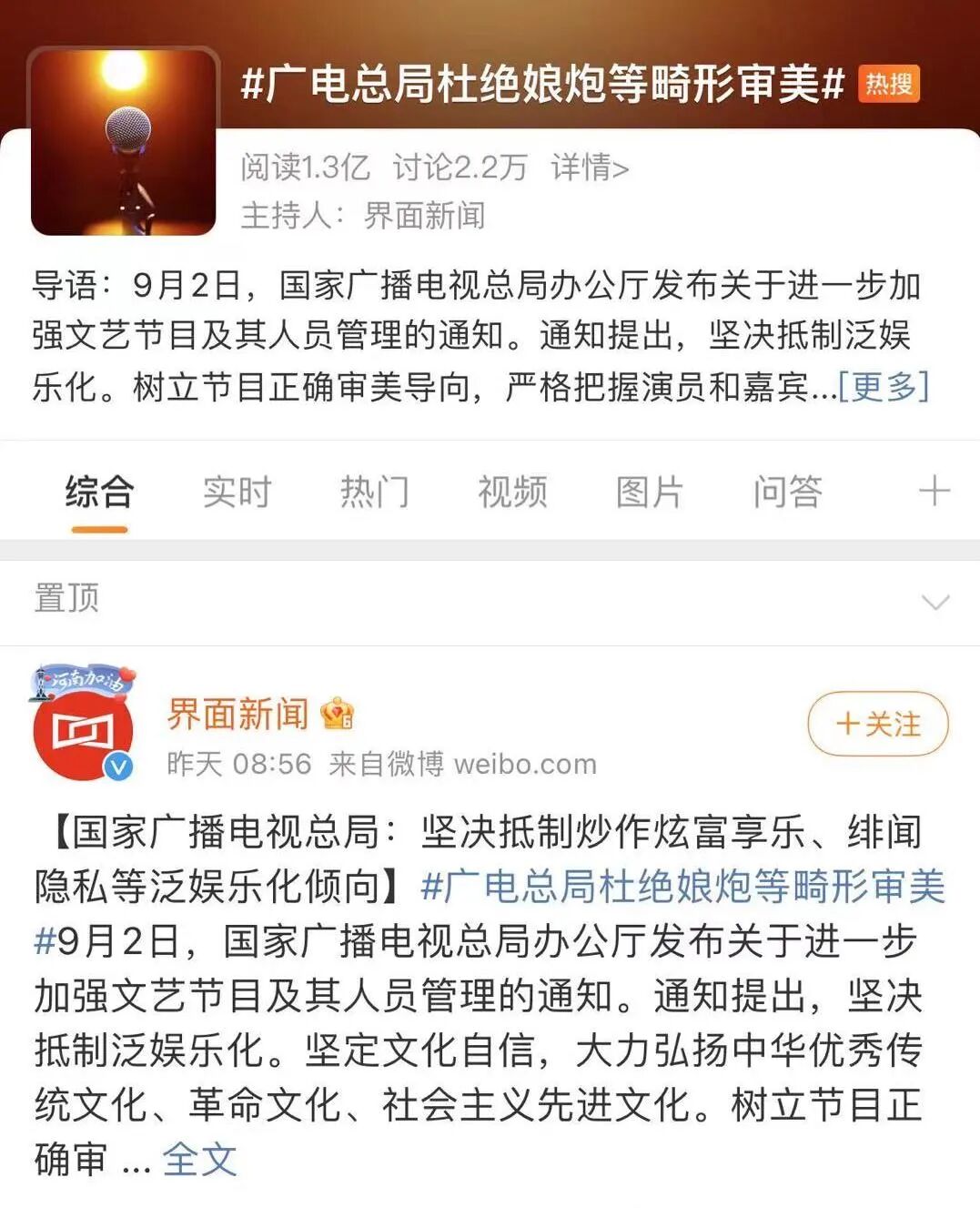 近日,中宣部和广电总局在最新发布的《通告》中,就明确指出,要坚决抵制“娘炮”等畸形审美。