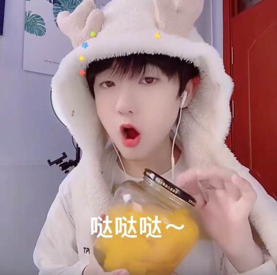 吃个水果罐头,先轻轻敲几下,再夹着嗓子嗲嗲的说着“吃个桃桃”、“好凉凉”……