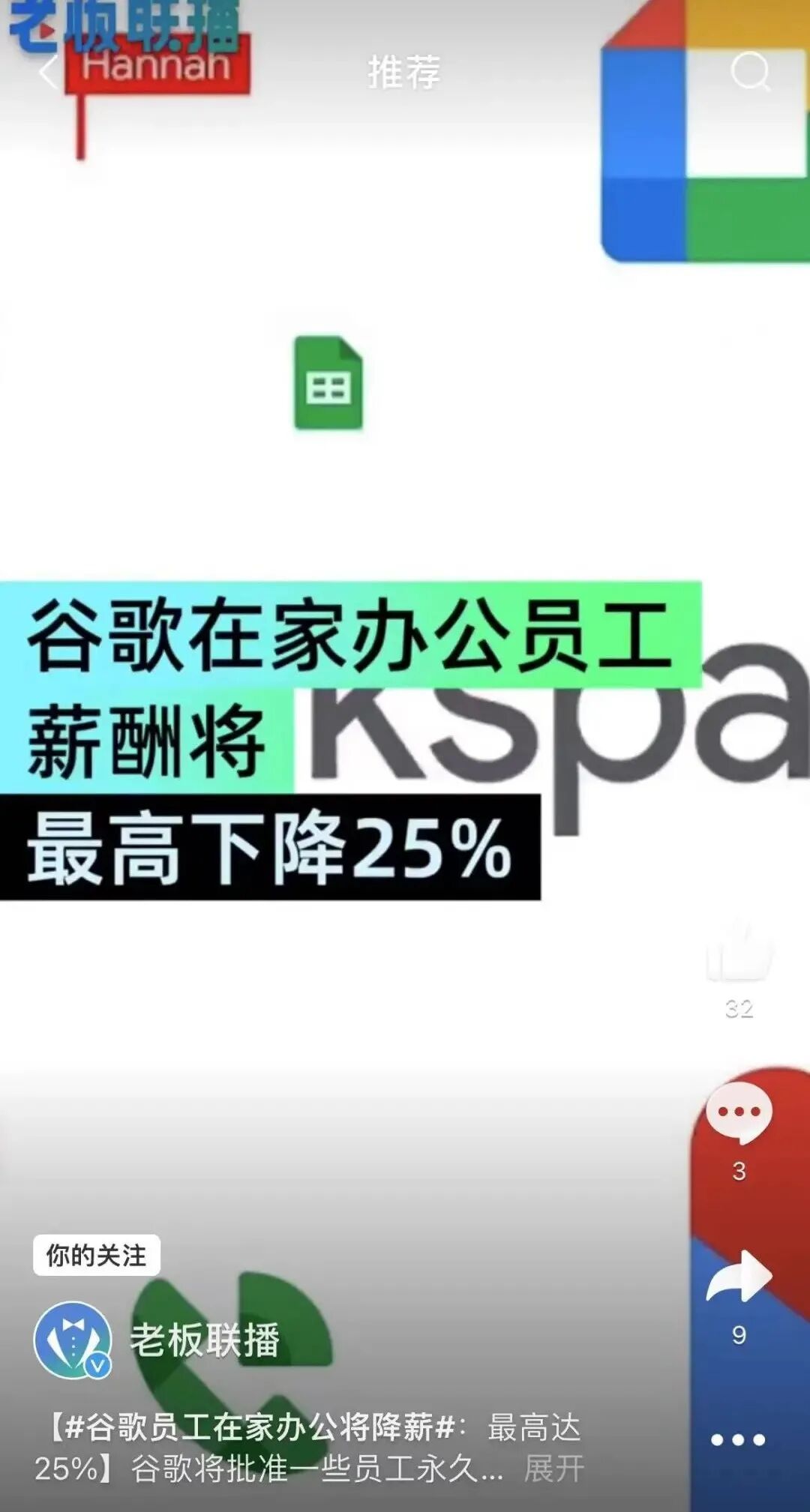 不过,没多久,谷歌又说了,咱们开始“混合办公模式”,每个礼拜至少3天到办公室上班。居家办公也可以,但是工资嘛,得少拿点,最高降薪25%……