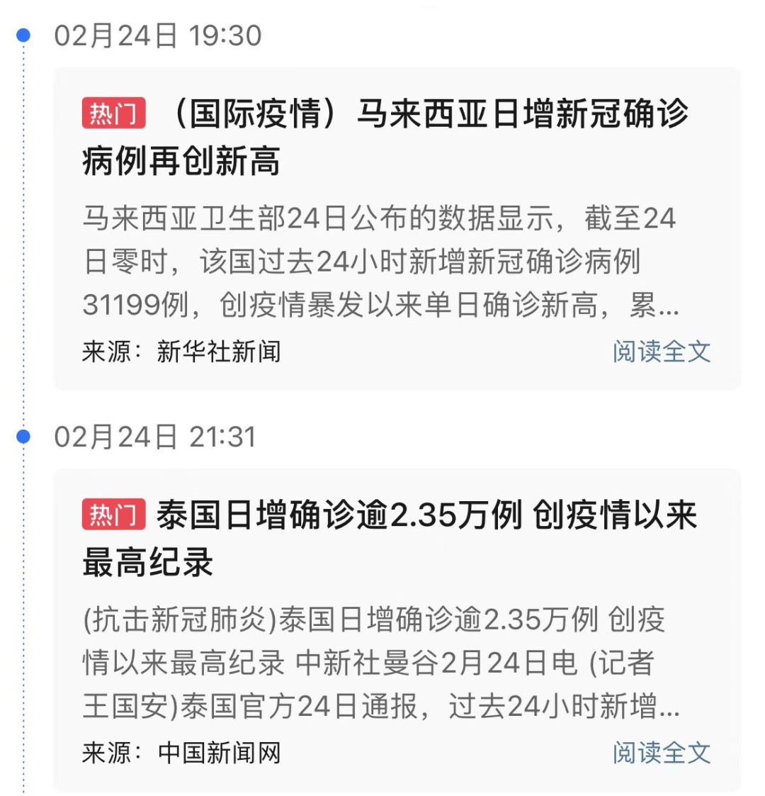 马来西亚日新增创新高;泰国日新增创新高、韩国日新增创新高、奥密克戎新变种已在美国30多州传播;印度新冠死亡人数或是官方数字的8倍;英国95岁女王确诊……