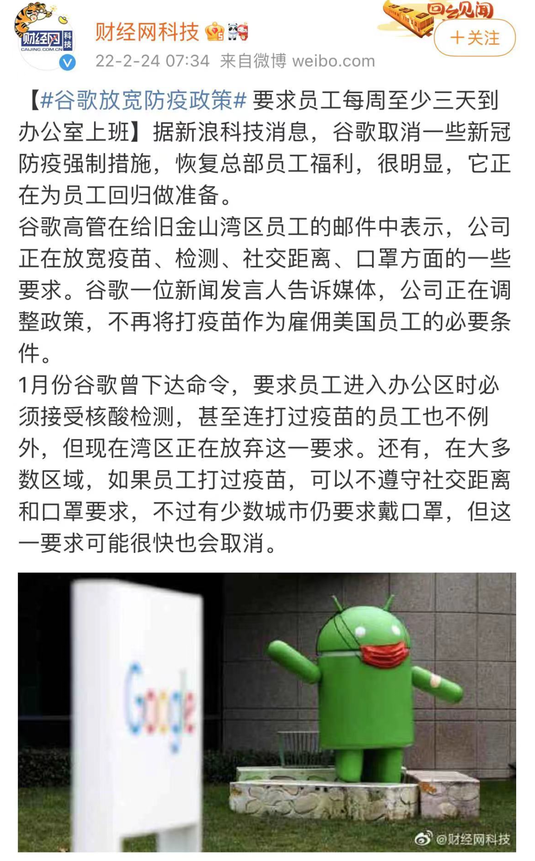 最近,谷歌又变卦了,不再将打疫苗作为雇佣美国员工的必要条件,甚至核酸检测和戴口罩也不要求了。