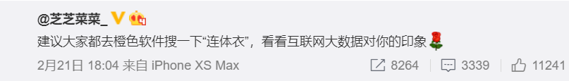 凭借多年上网冲(开)浪(车)的经验,光看到“连体衣”这个关键词,我脑子就蹦出了三个字: