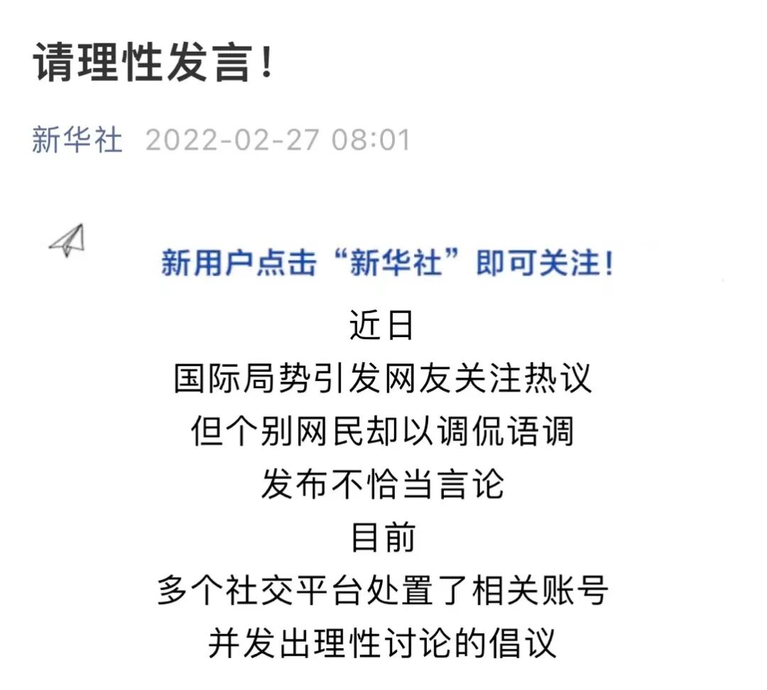截至目前,微博、抖音、微信等主要平台均发出官方公告,提醒网友保持客观理性、合理表达观点。