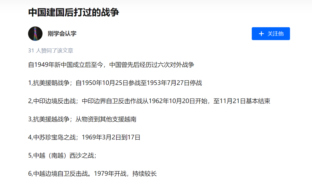 而在建国之后,中国人民解放军又先后6次御敌于国门之外,以血肉之躯守护了中国的平安。