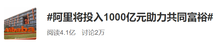 继腾讯投入1000亿用于共同富裕后,阿里巴巴也将投入1000亿元助力共同富裕!