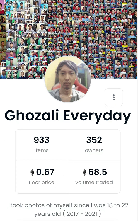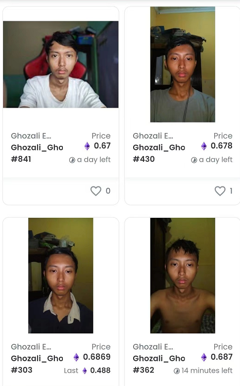 一位印尼男大学生将他从2018年到2022年中,坐在电脑前的900张自拍照上传到NFT交易平台OpenSea。
