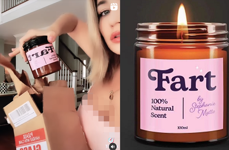 斯蒂芬妮不仅卖屁罐,还卖起了屁味香薰蜡烛,点燃会是什么味道,我可就不知道了,大家自行脑补 ……