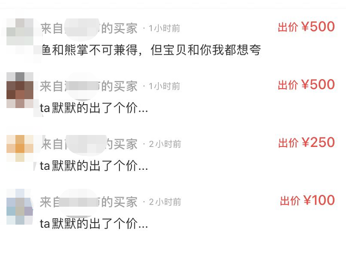 本来我以为不会有人买,没想到商品底下有人出价500元……