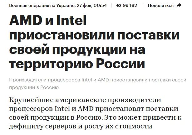 “台积电、AMD、英特尔等芯片企业,宣布暂停向俄罗斯供货。”