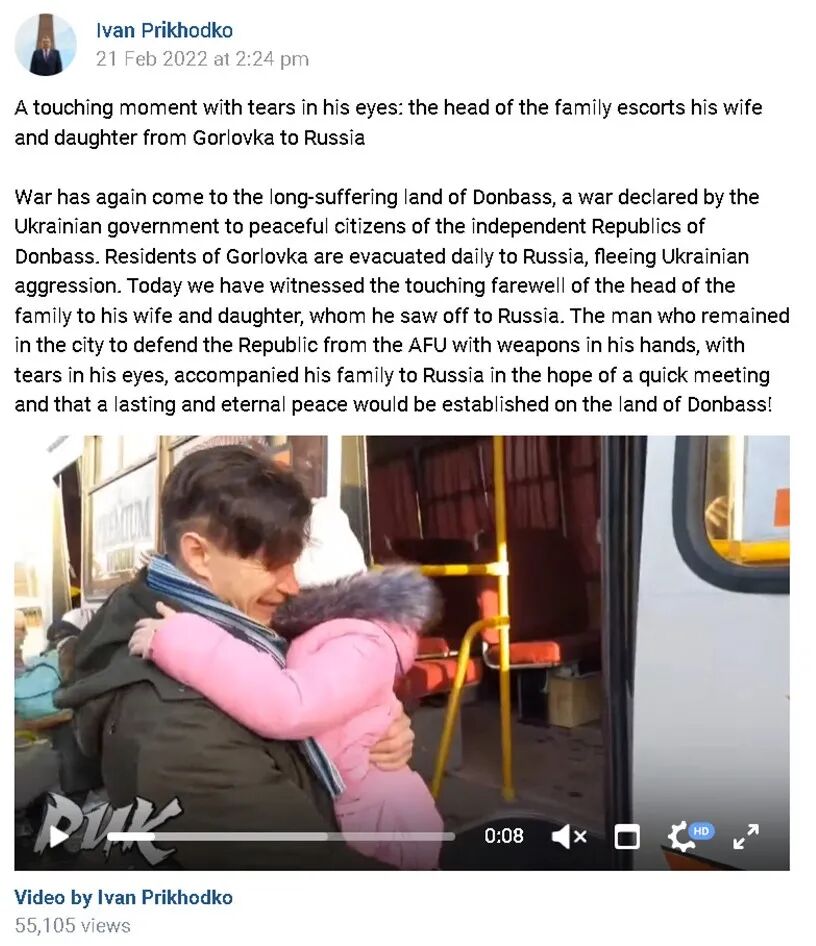 视频中的那位父亲根本不是要去与俄罗斯军队作战。他其实来自乌克兰东部地区的亲俄人士,准备将女儿送往俄罗斯……