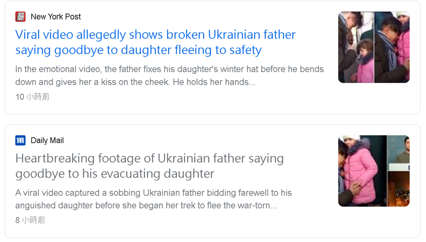 特别是外网刷屏的一条标题为“一名乌克兰父亲在上战场与俄军作战前,与女儿挥泪诀别”的新闻视频。
