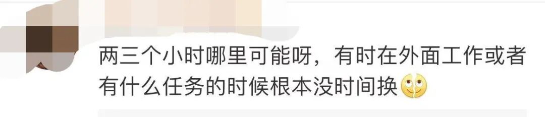 “两三个小时哪里可能呀,有时在外面工作或者有什么任务的时候根本没时间换”。