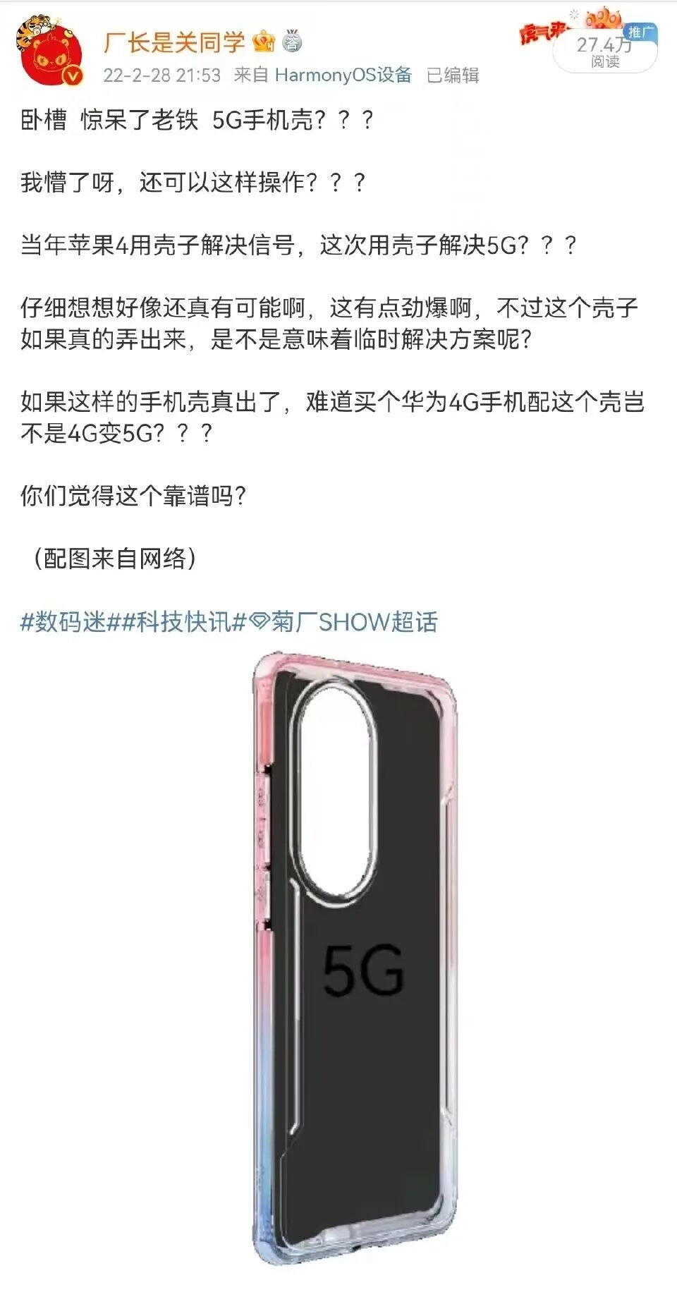没错,就是字面意思,带上一个手机壳4G手机就能变5G。