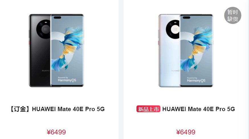 这个月初发布的Mate 40E Pro 5G版稍微便宜一点,不过目前已经处于缺货预订的状态。