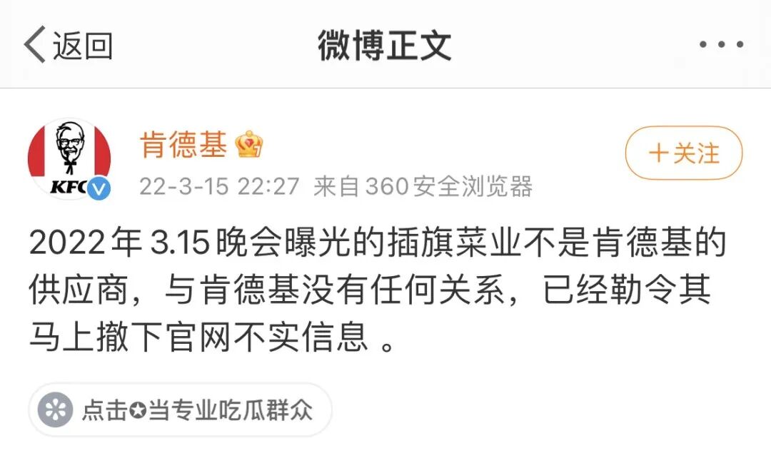 插旗菜业不是肯德基的供应商,与肯德基没有任何关系,已经勒令其马上撤下官网不实信息 。
