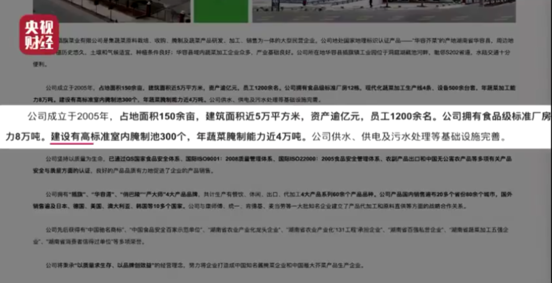 根据央视的曝光,这次“出事”的几家企业,分别为插旗菜业、湖南锦瑞食品有限公司、岳阳市雅园酱菜食品厂、坛坛俏食品有限公司。