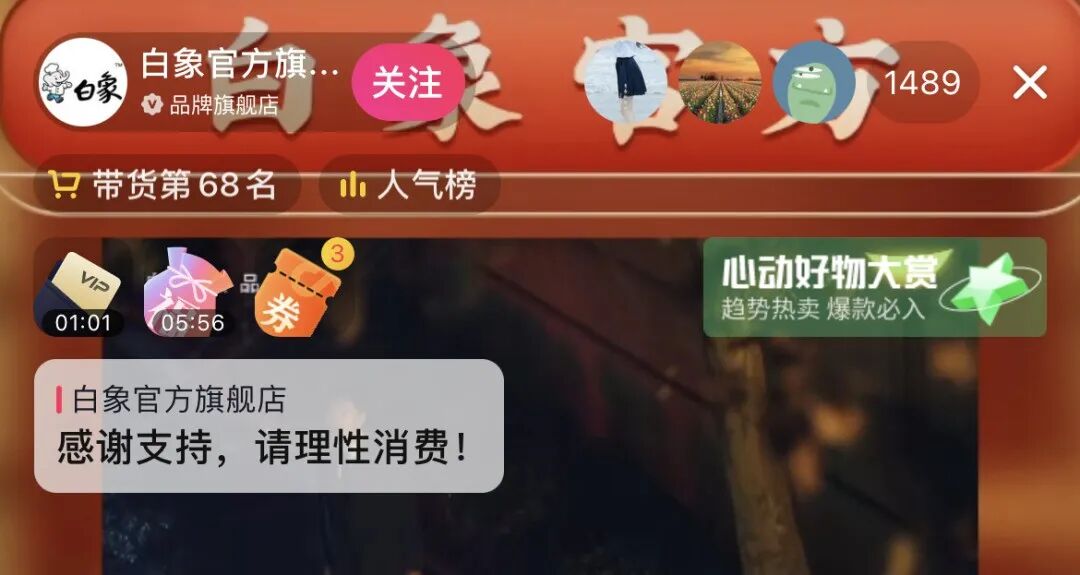 随后更是在直播间挂出了“感谢支持,请理性消费”的标语。