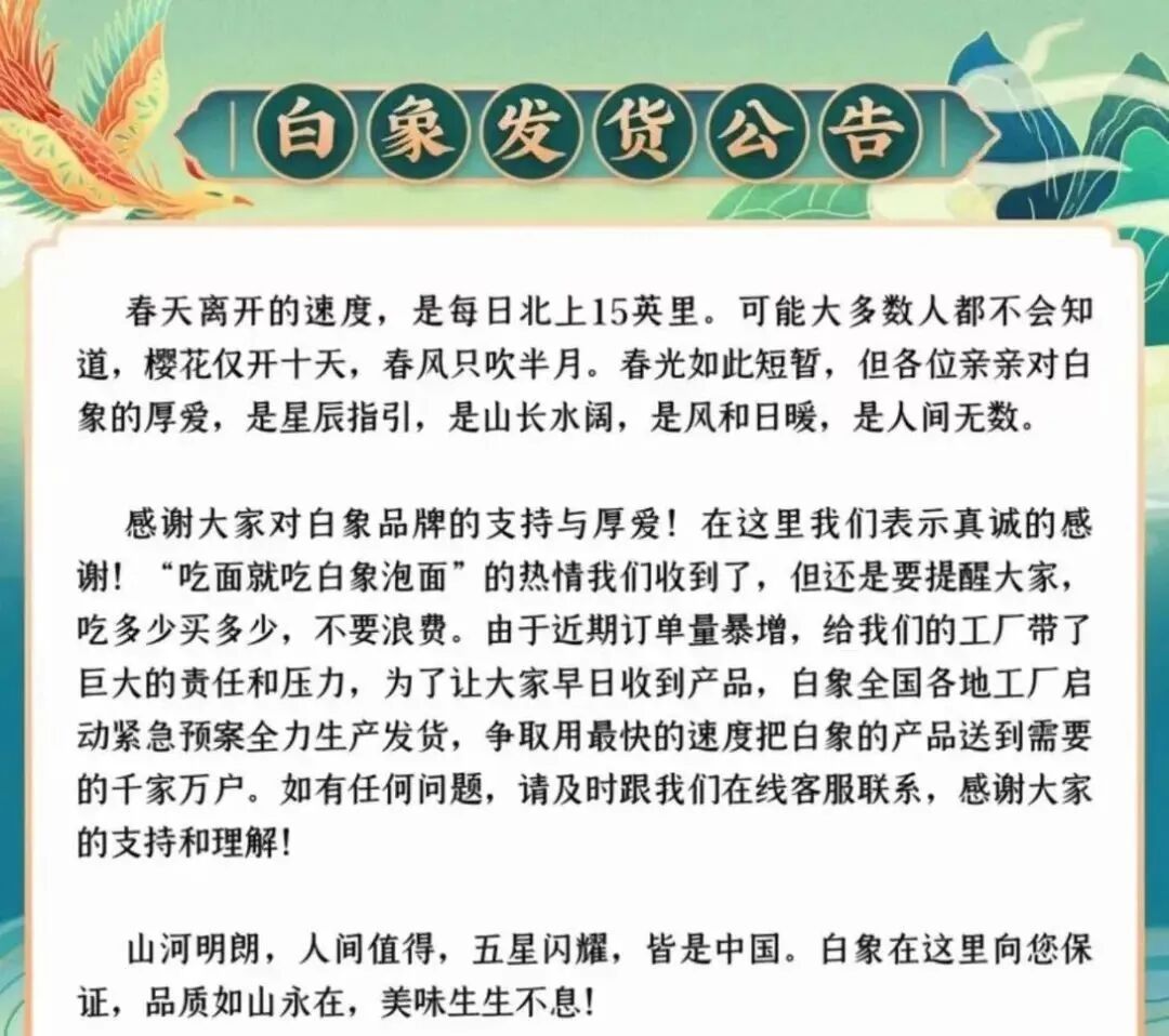 网友们所爆发出巨大的消费热情,也让白象官方“受宠若惊”。