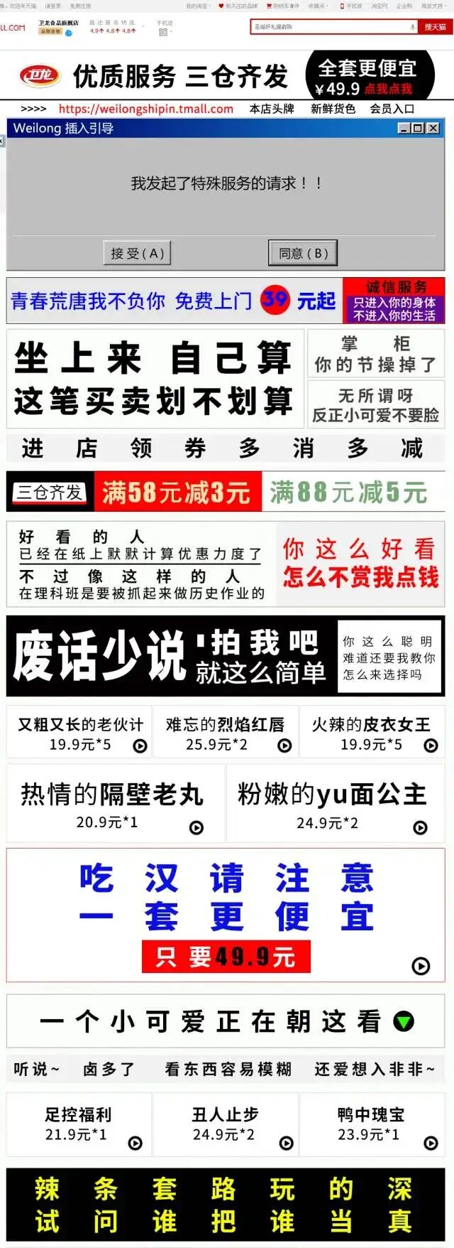额,这确定是辣条的旗舰店?不是什么奇奇怪怪的小网站?玩梗过了头就让人反感了。