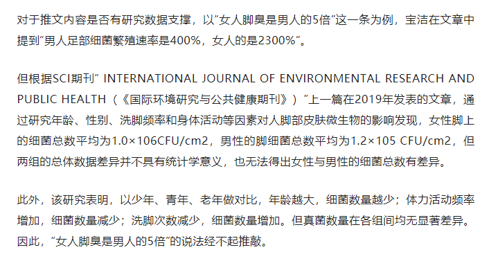 其实,早在前几年就有学者在SCI期刊上发表文章,证明“女人脚臭是男人的5倍”是伪科普。