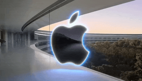 这还没完,在苹果给媒体的AR邀请函中,除了🌹金色外,同样出现了四边发光的Logo,并且第一幕的Logo是黑色的。