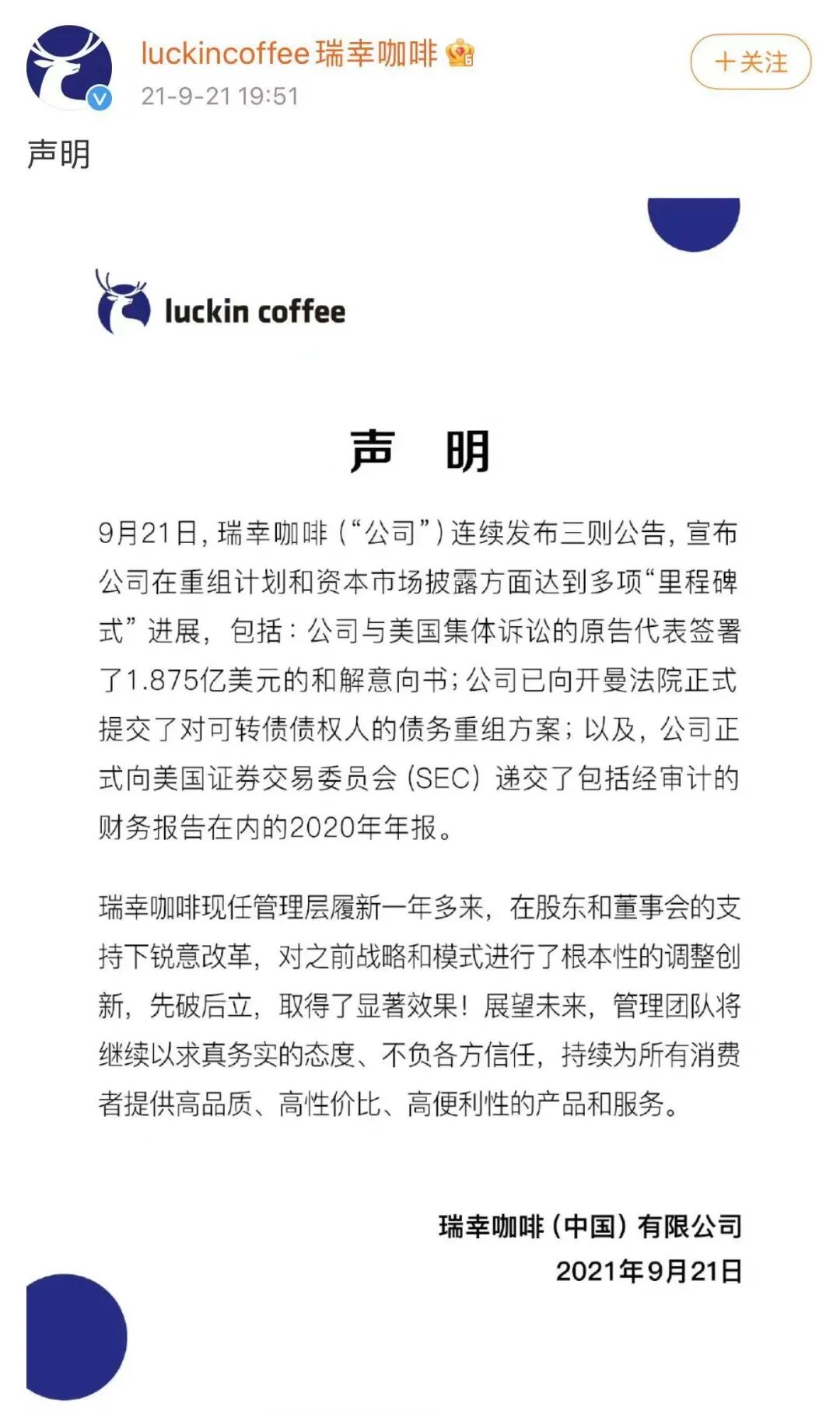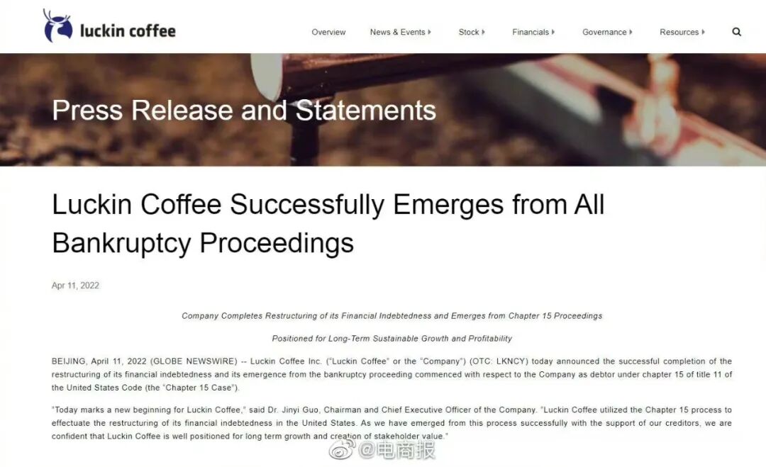 而就在我写这篇稿子的前一晚,瑞幸咖啡官网宣布完成金融债务重组,正式结束作为债务人的破产保护程序。