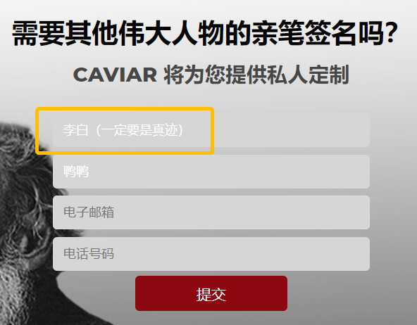 Caviar表示:“接受私人订制签名,你想要谁的我帮你联系!”