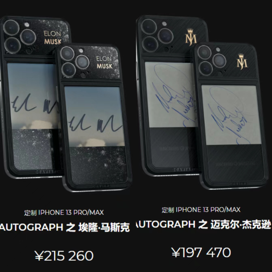 迈克尔·杰克逊签名版iPhone 13 Pro卖19.7万元,埃隆·马斯克签名版更贵,要21.5万元。