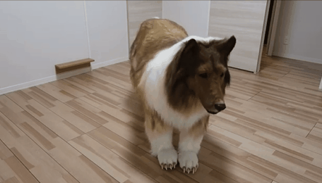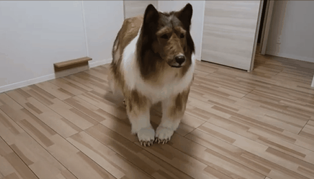 于是Toco找到日本一家专业道具公司给他定制了一款四脚兽套装,只要穿上就能变成狗子……