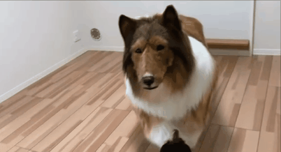 给大家看看它长啥样,它的外表是牧羊犬,黄白配色,长毛品种。(它不是狗!)