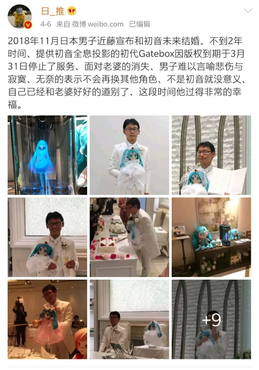 4年前,35岁的日本宅男近藤显彦花了200万日元(约10万人民币)和女神“初音未来”举办了婚礼。