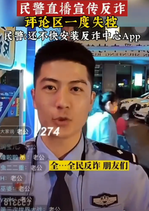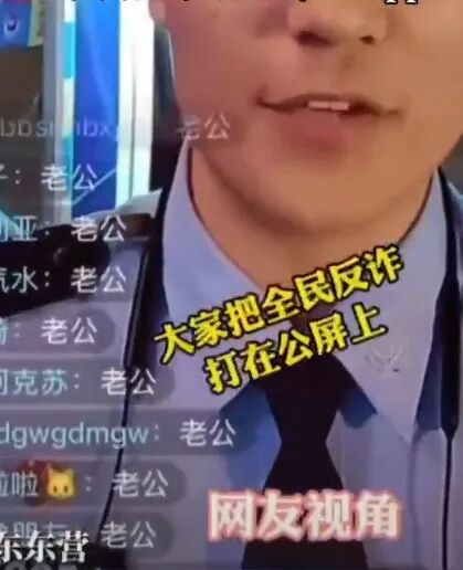 小刘警官在直播间说:“大家把‘全民反诈’打在公屏上!”