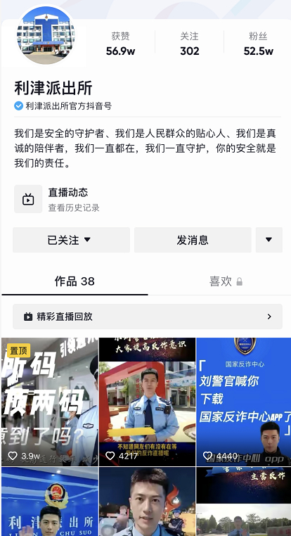 鸭鸭翻了一下他们的抖音号,视频基本都是在宣传反诈知识,什么电信诈骗防范,老年人诈骗防范等等,让大家下载使用国家反诈中心App。