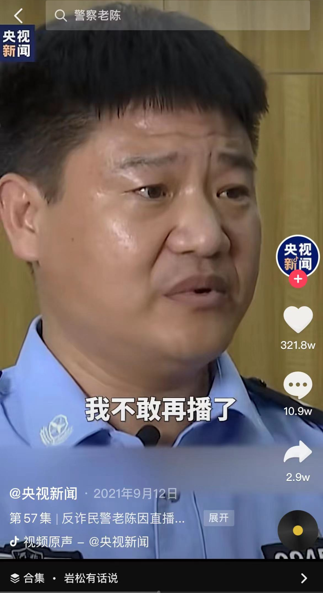 去年9月,一位账号名称为“反诈警官老陈”的民警,因为跟其他主播连麦宣传反诈火了。