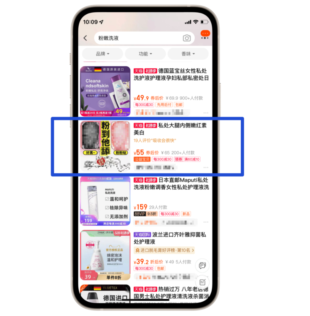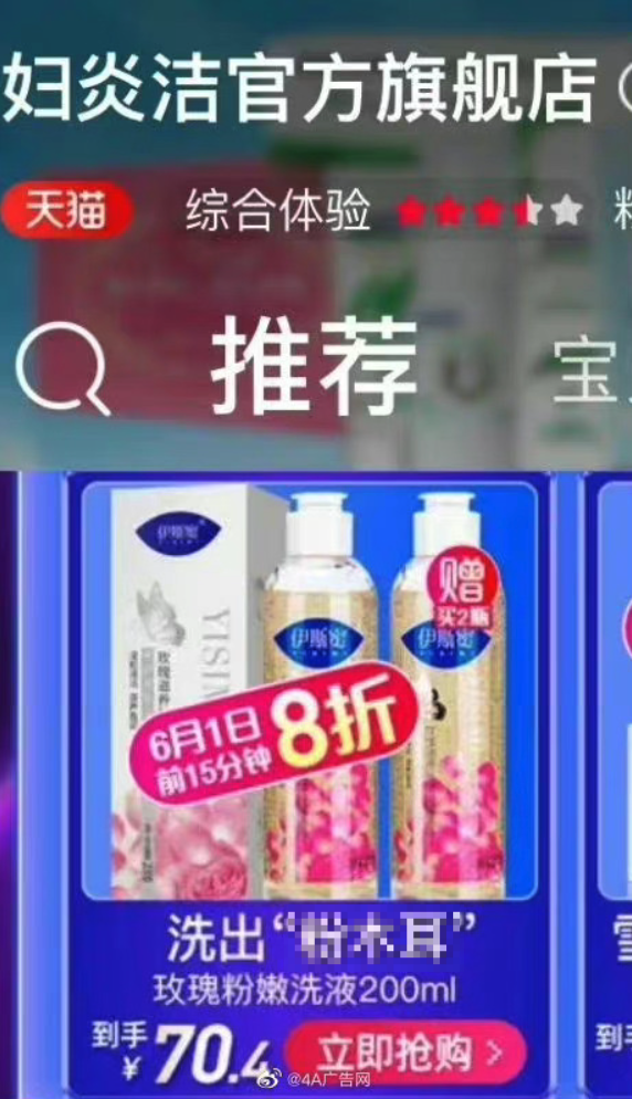 妇炎洁官方旗舰店上架“玫瑰粉嫩洗液”,大字标明“洗出粉**”