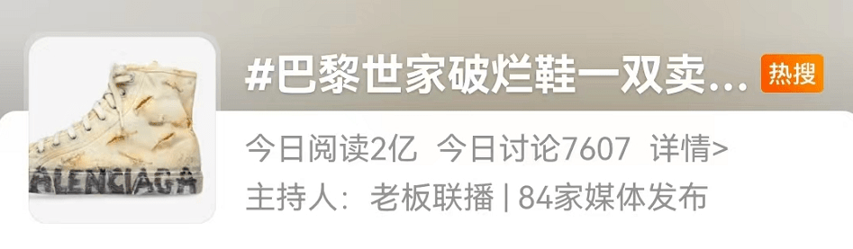 这回巴黎世家也不甘落后,用一双“破烂鞋”妥妥登上了微博热搜榜⬇