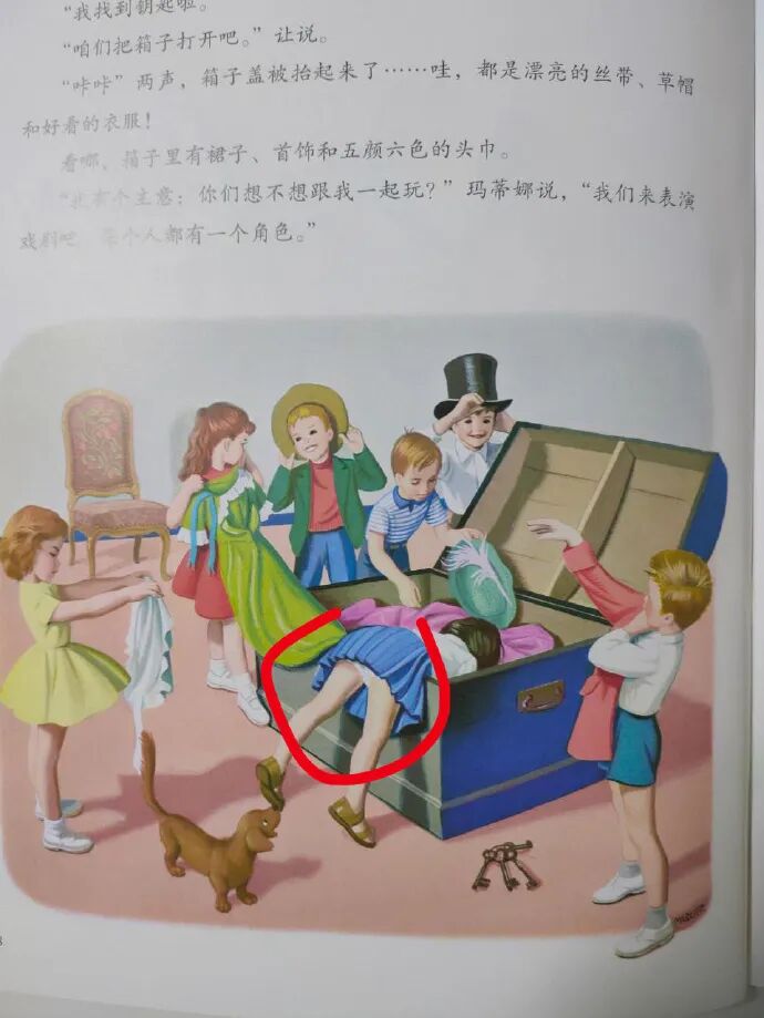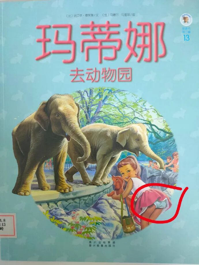 网友还发现,在《玛蒂娜去动物园》系列绘本中,有很多小女孩穿短裙露出小内裤的画面。