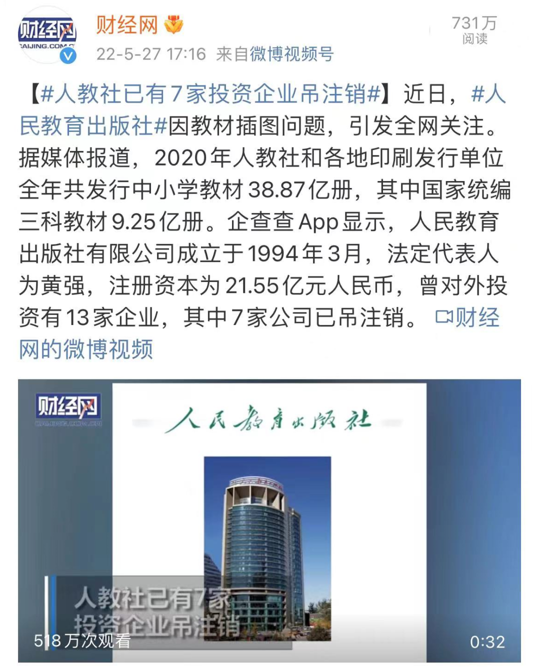 人教社已有7家投资企业注销。