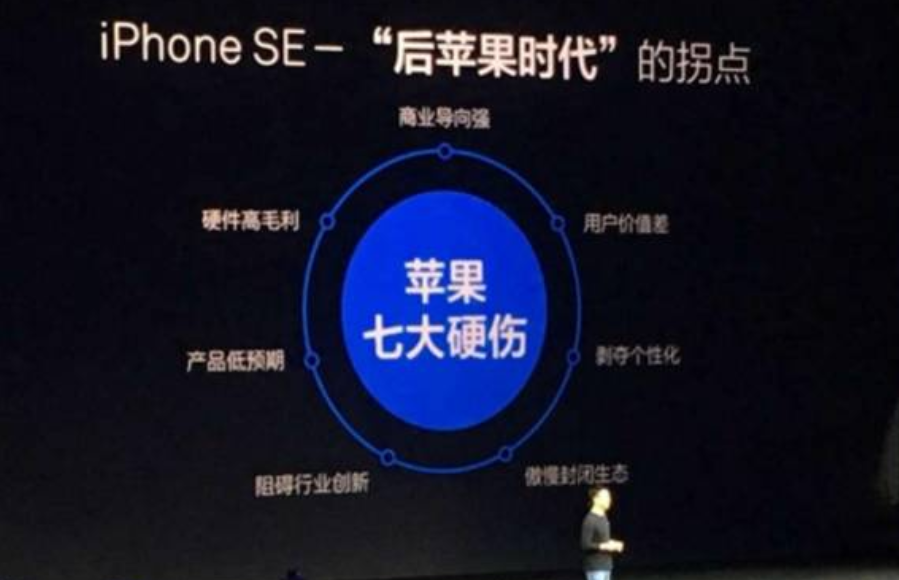 贾跃亭吐槽苹果发布的iPhone SE,是苹果进入“后苹果时代”的拐点,苹果已经沦落为旧势力的代表。