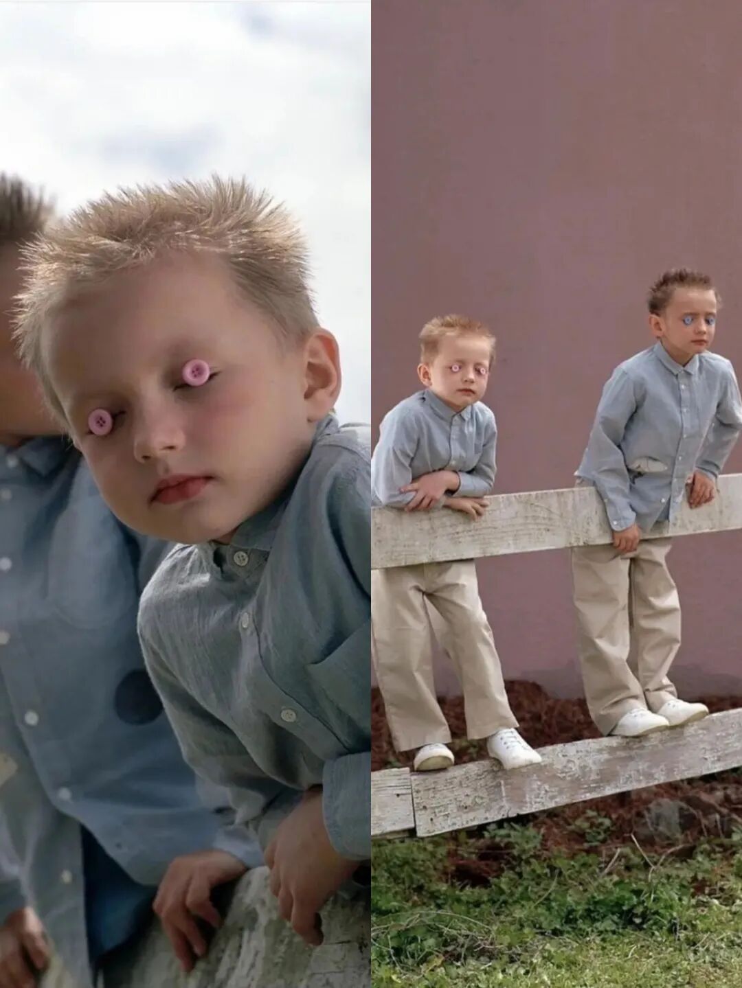除了衣服,江南布衣童装早前发布在外网的模特图也十分诡异: