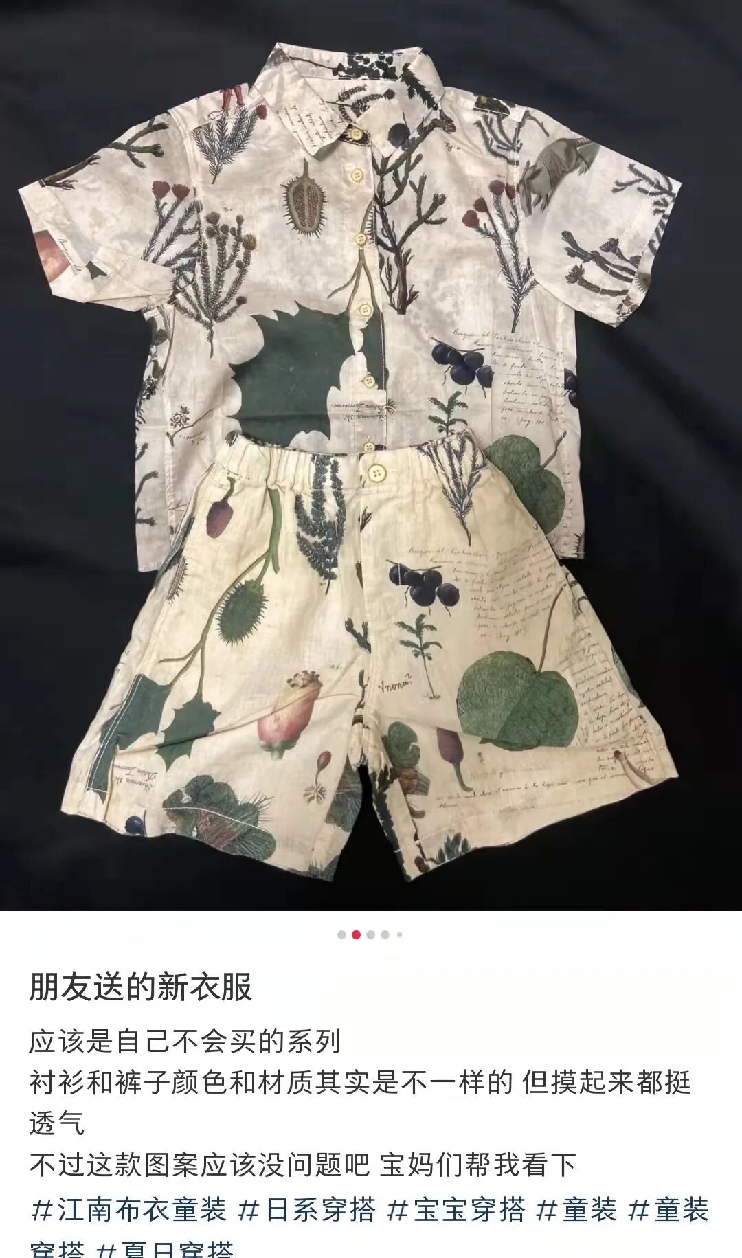 接着,鸭鸭还发现有网友在社交平台发帖,向广大网友咨询下面这套江南布衣的童装图案。