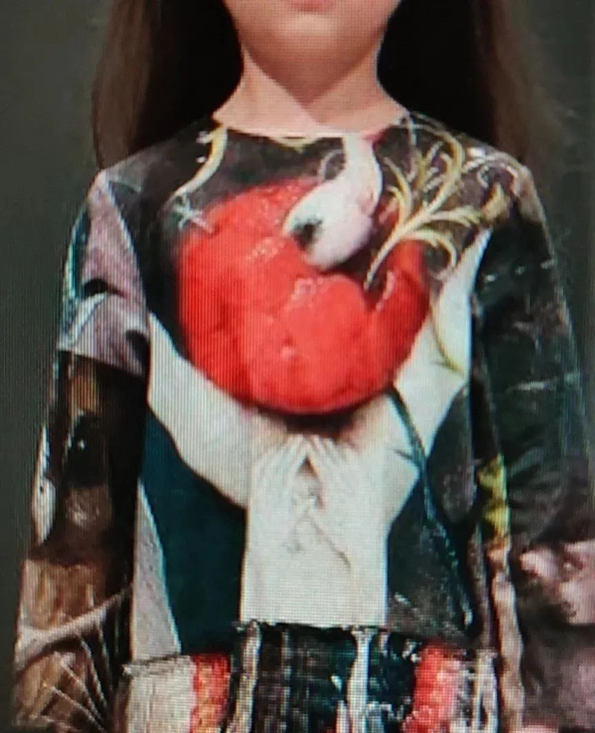 这幅画作带有强烈的宗教主题和对世人肉体享乐的劝诫意味,尽管如此,这种成人美学的内容放在童装里不合适吧